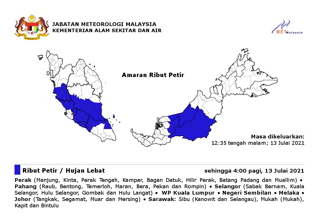 Amaran Ribut Petir Di Beberapa Daerah Di Sabah Sarawak Sabah Media