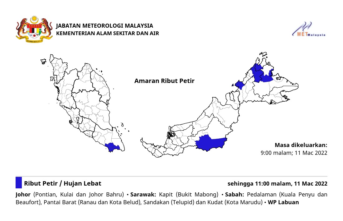 Ibu Pejabat Perkhidmatan Kajicuaca Malaysia telah mengambil alih tanggungjawab Pejabat Kajicuaca Cawangan Sabah dan Sarawak daripada Jabatan Penerbangan Awam Malaysia Timur. Amaran Cuaca Jabatan Meteorologi Malaysia Hujan Lebat Di Sabah Dan Sarawak Hingga Ahad Rakyat disarankan untuk berhati-hati. Jabatan Pengairan dan Saliran JPS 12.